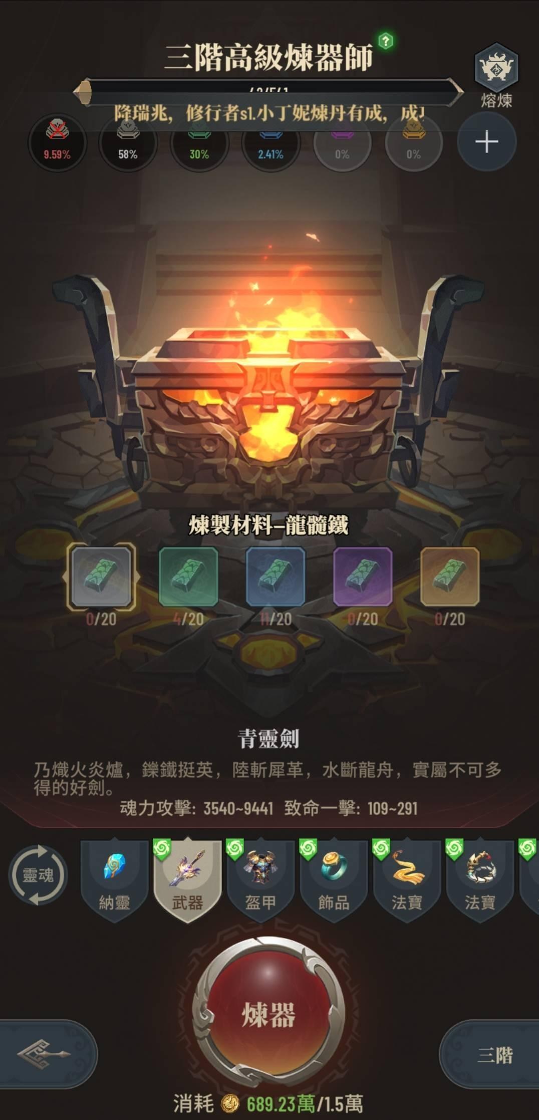 而煉器的部份則是需要10份玄鐵才可製作,也就是5000*10=50000,一天至少要有50000份的玄鐵才可以達標。