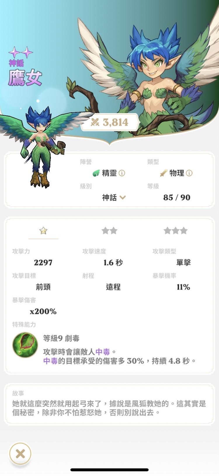 鷹身女妖妹妹, 攻速快的遠程單體單位,