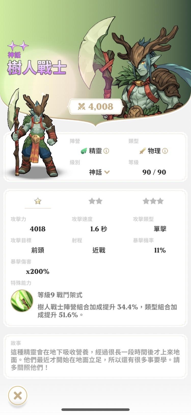 :單體猛男, 能力跟花卉術士一樣是組合加成提高, 三星以後單體傷害超級高, 只可惜手短了點, 升級不會增加攻速.