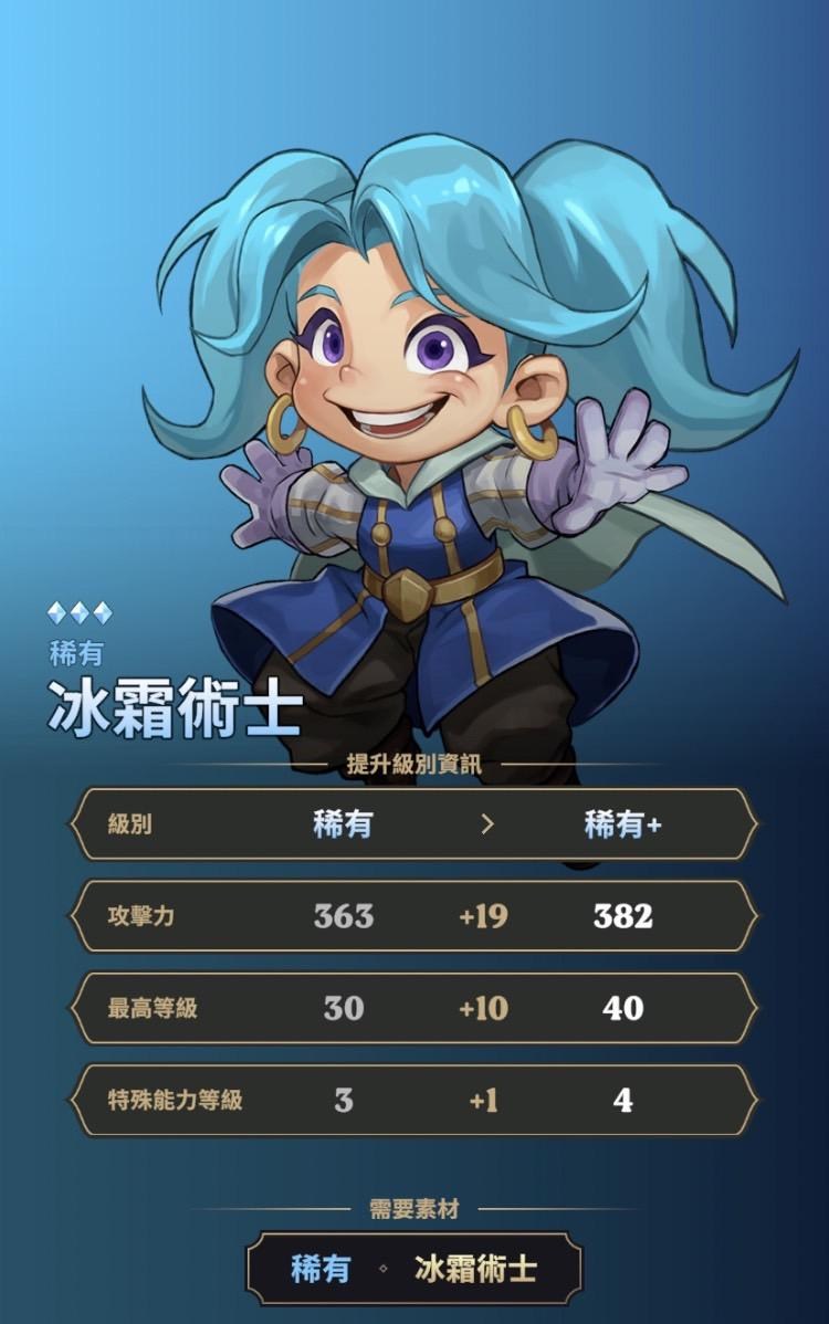 冰霜術士使用冰系法術進行遠程攻擊,還可以讓獵物的移動速度變慢,可傷害又可輔的角色,這隻也是我隊伍之中必備的角色。
