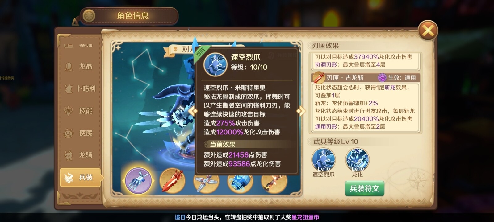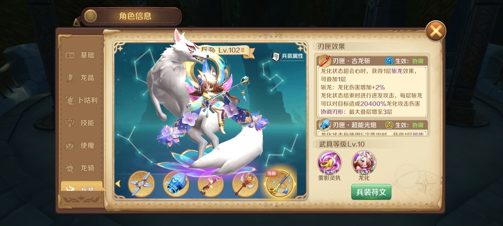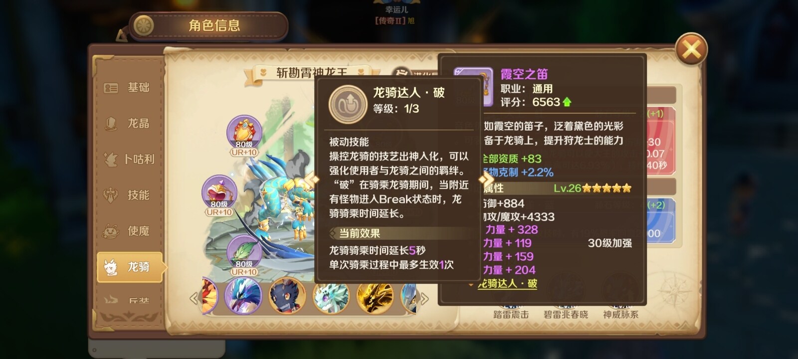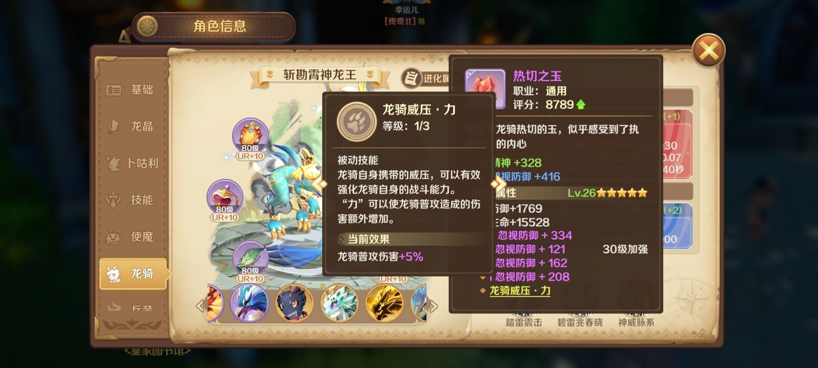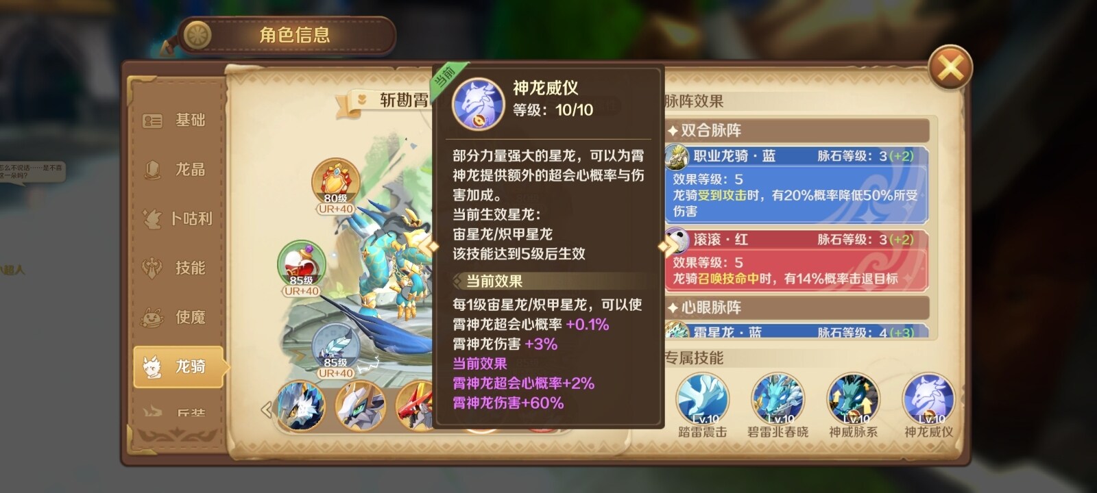 *當出戰龍為霜龍/霄神時,可考慮觸發瀾星UR激流技能,為龍騎增加額外傷害,1顆18級UR可觸發,升5階不被其他神龍晶技能驅散