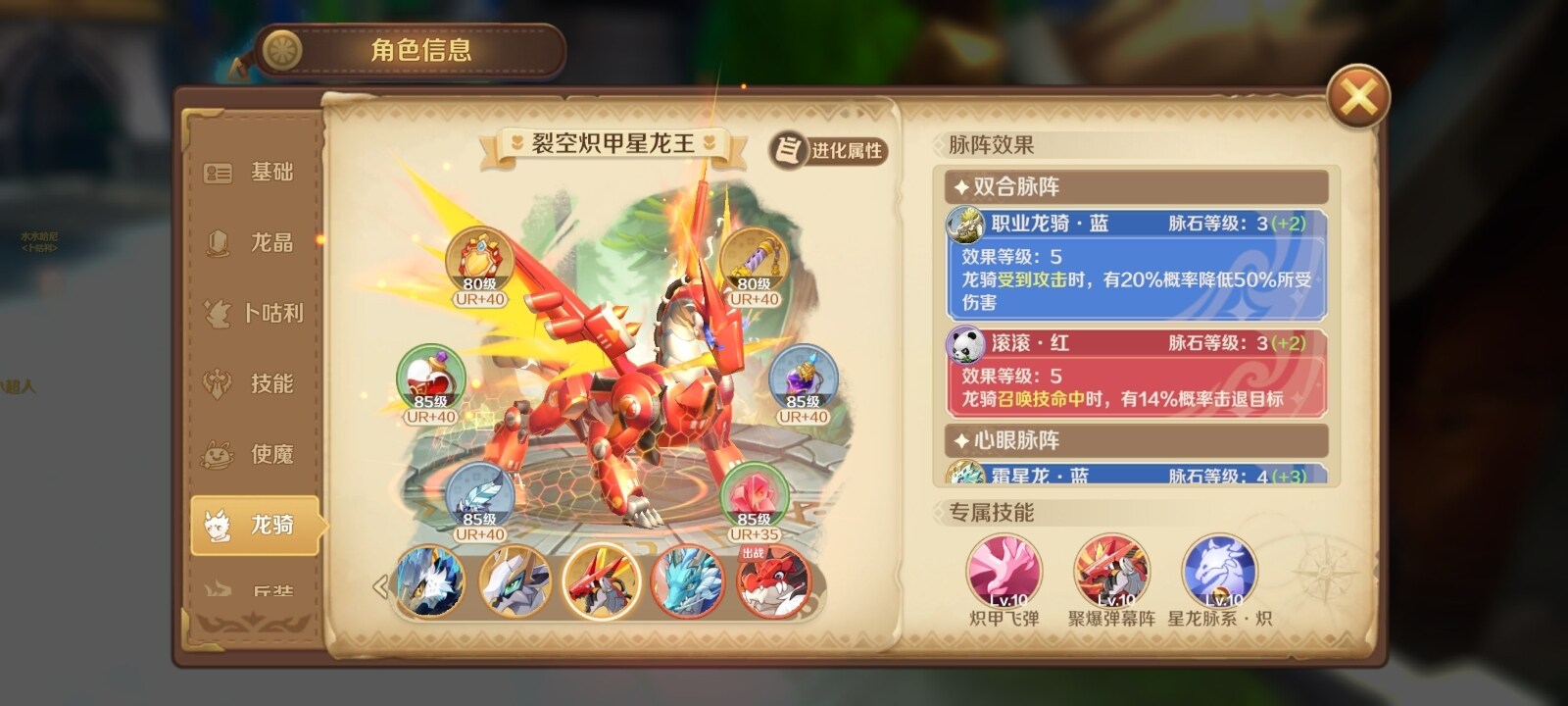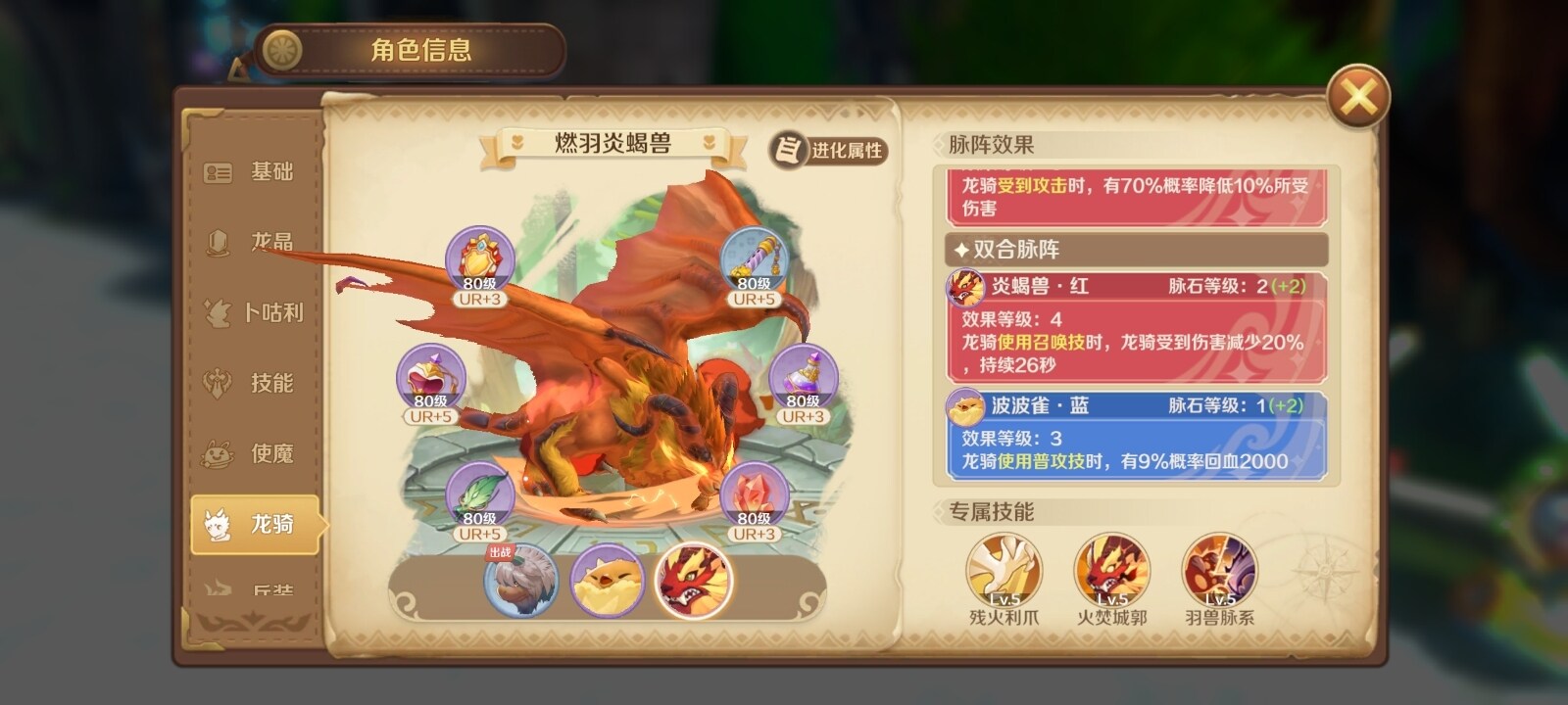 *龍騎脈陣,解鎖波波雀和炎蝎獸可為龍騎帶來buff效果