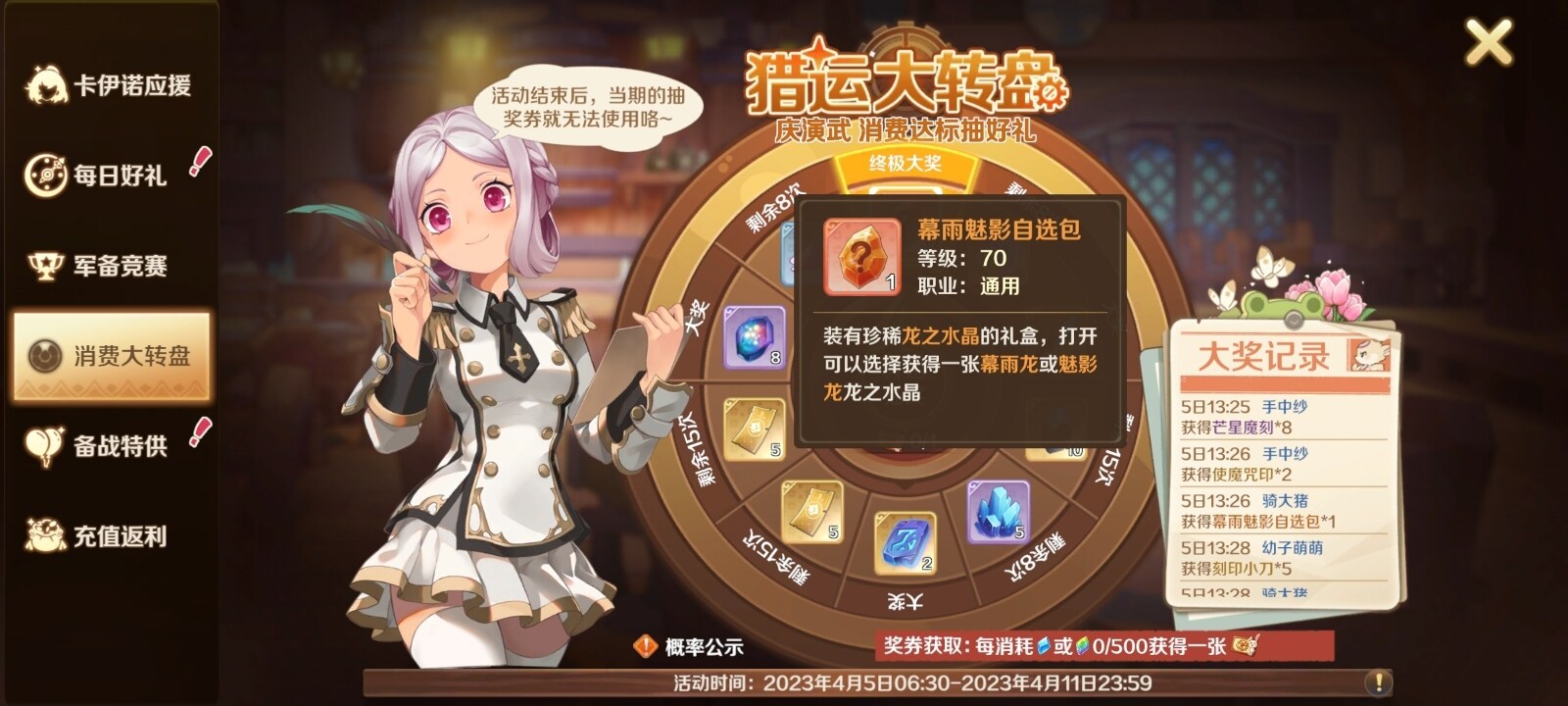 *陸版開服第8天及之後不定期會有大轉盤活動,第一次轉盤送普通金寵之後送別的資源,微課玩家最好存著藍鑽等有活動才去花藍鑽拿消費獎勵,免費抽出金寵約需消耗2-2.7萬藍鑽