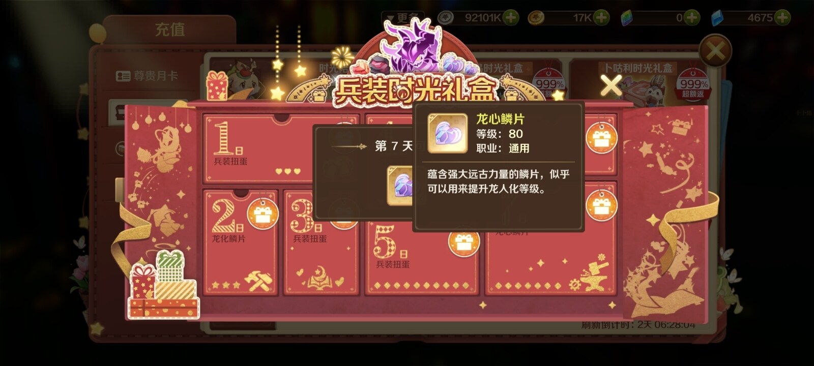 小課以上的課金玩家盡量拉滿兵裝的時光禮盒不要停,