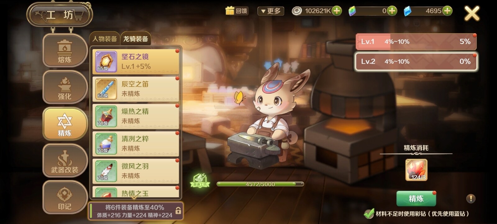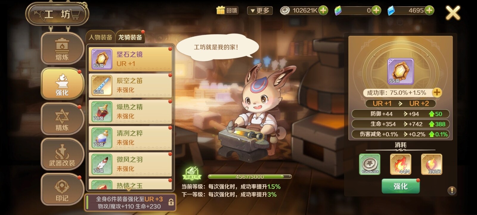 角色裝備強化達標後,開始存龍騎裝備強化的材料,需要火種,金色火焰和金色精煉石