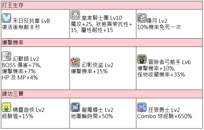 減少受到傷害25% 被動技。這裡的傷害不包含BOSS的%數傷害 比起其他法師, 主教練功不容易死也省藥水的籌碼之一 |