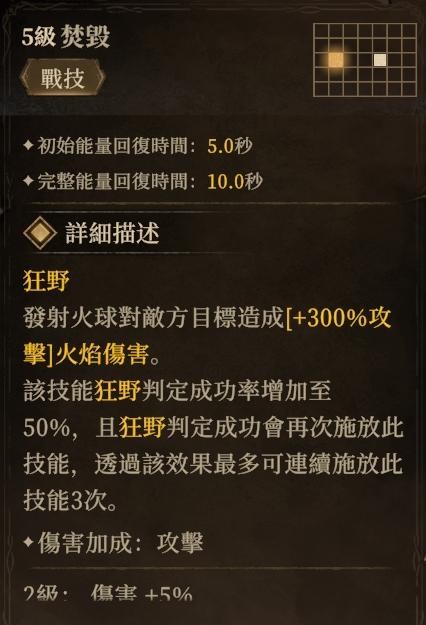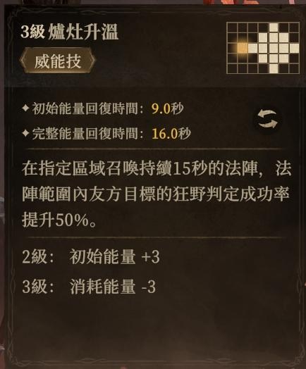戰技還增加狂野判定50%,最多可以連續三次 搭配第一招回能去丟第三招威能技