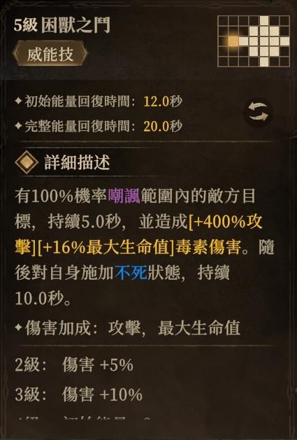 擁有一隻坦克應該有的嘲諷效果,還可以持續10秒的不死狀態等待後方補師餵奶。