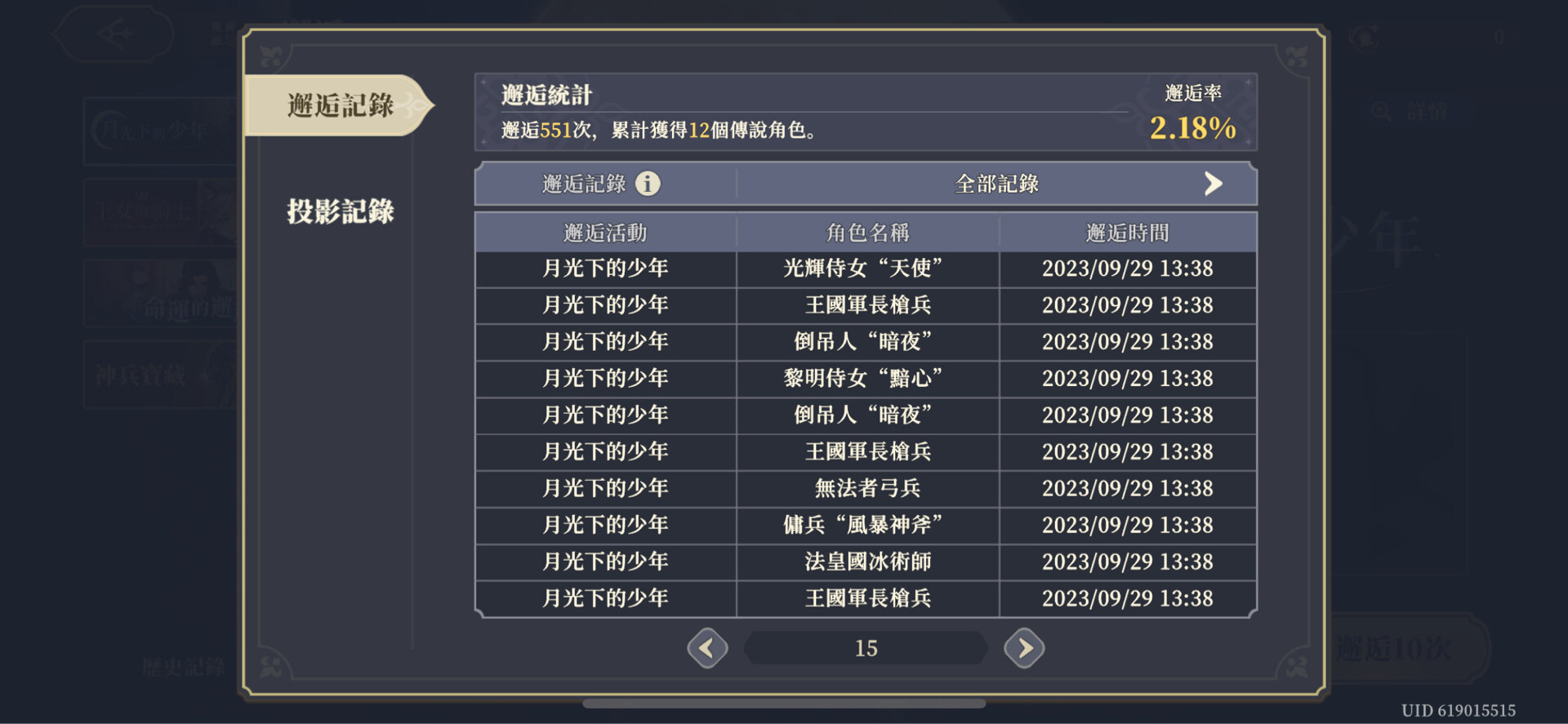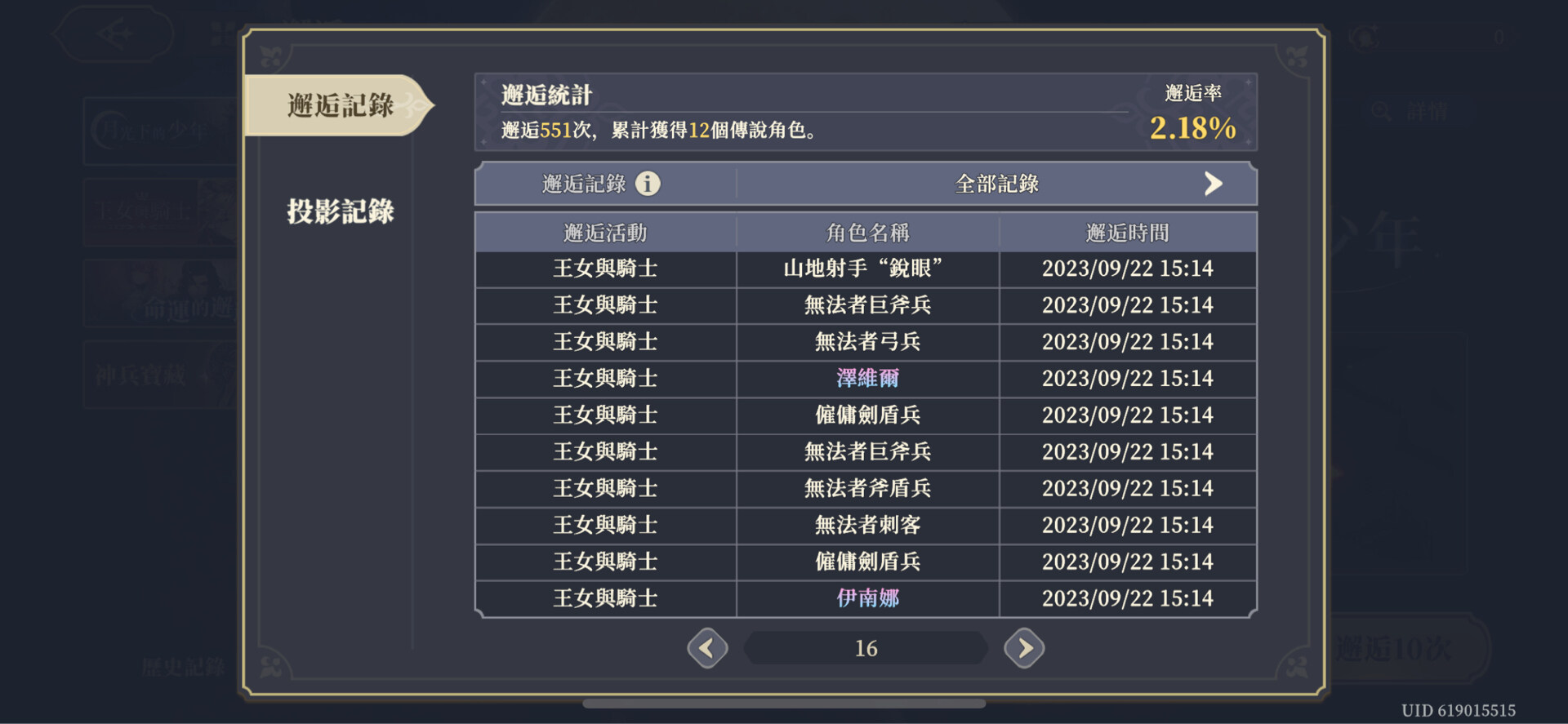 先上圖鎮一下樓,自從上次王女雙黃後,401抽,11隻SSR,2.75%,為了抽新的角色,我足足花了150抽,才成功出1隻SSR,550=11隻SSR(2%)