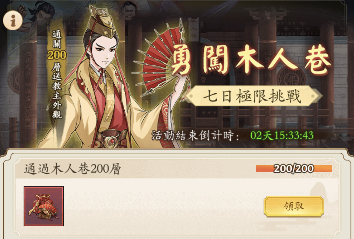 今天會提升到45等,筆記上的招式只剩下2-3個沒開而已了,紅裝開放後戰力上升很多,還沒獲得木人200巷的可以依靠紅裝通過是沒問題的。