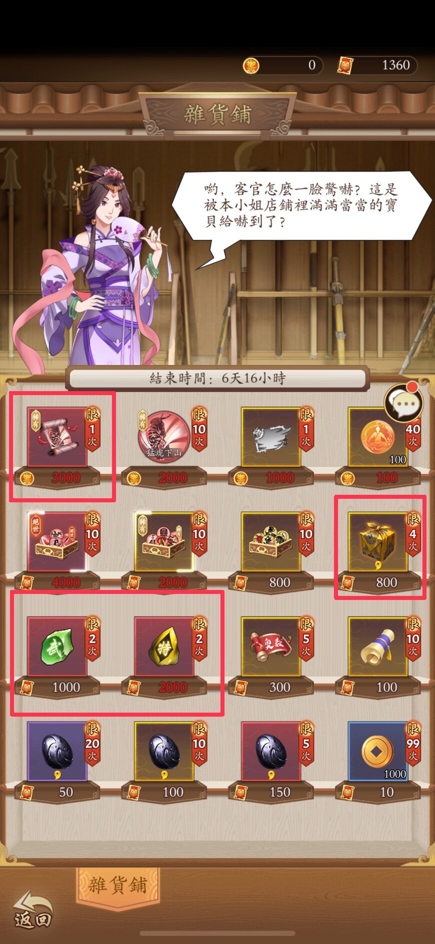 4.雜貨鋪-優先換取用紅框圈起來了有多的點數再根據需求去兌換其他物品