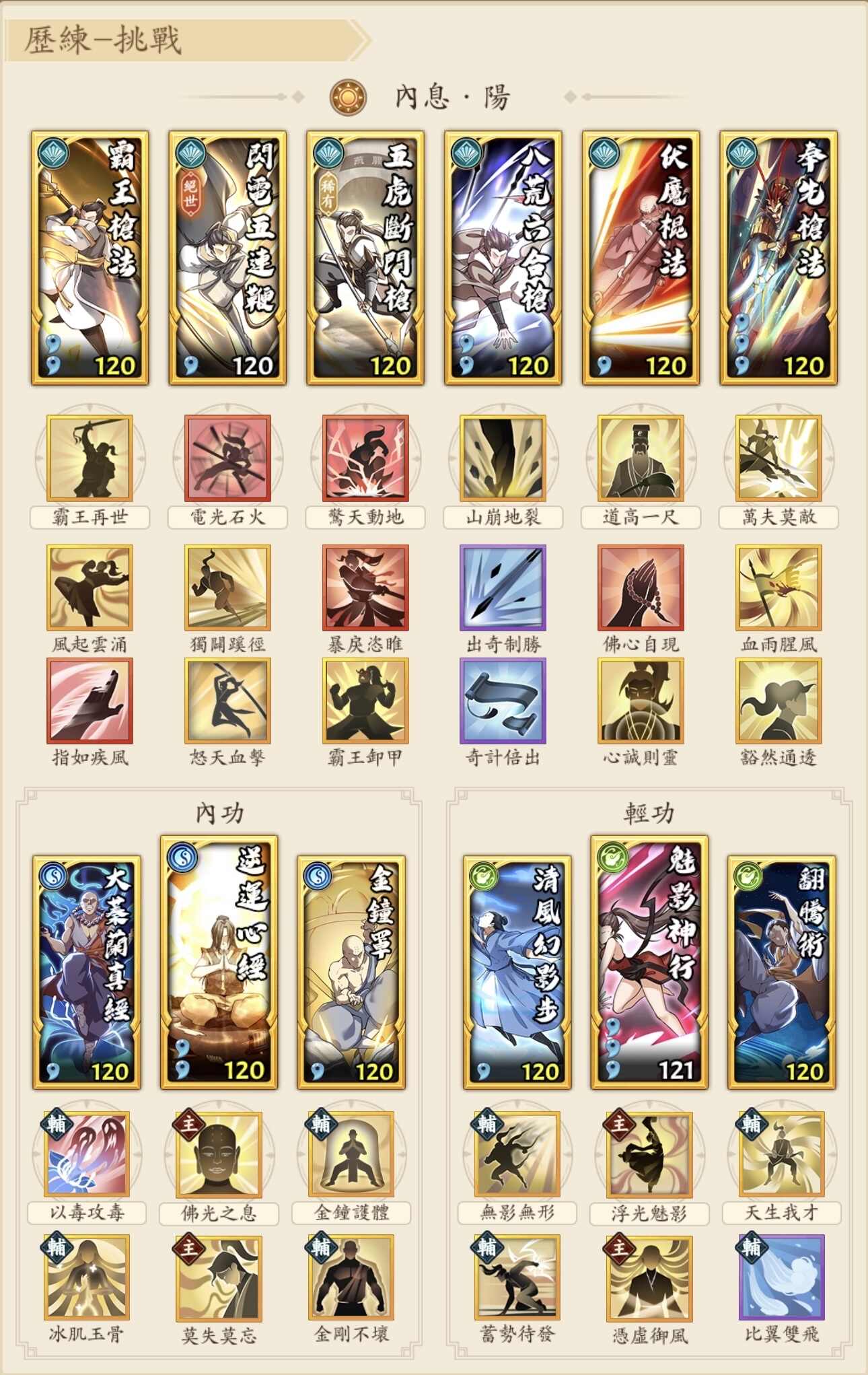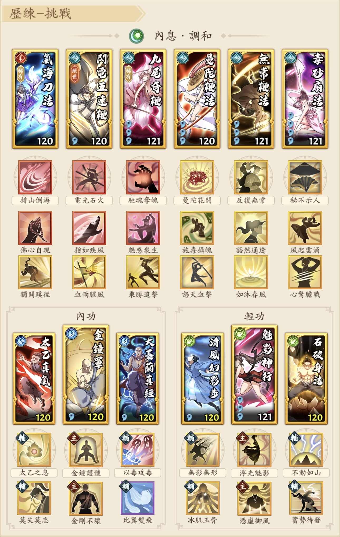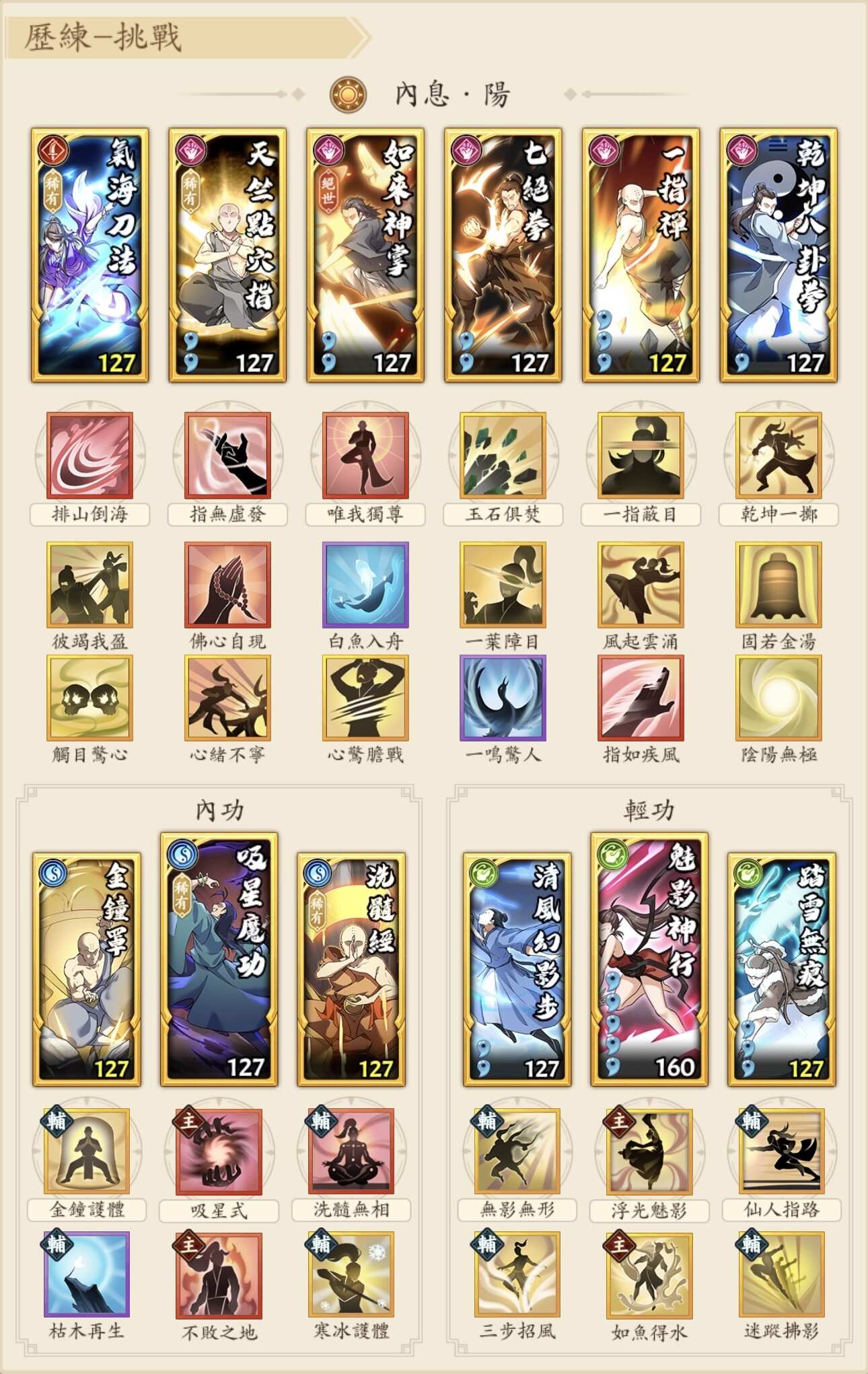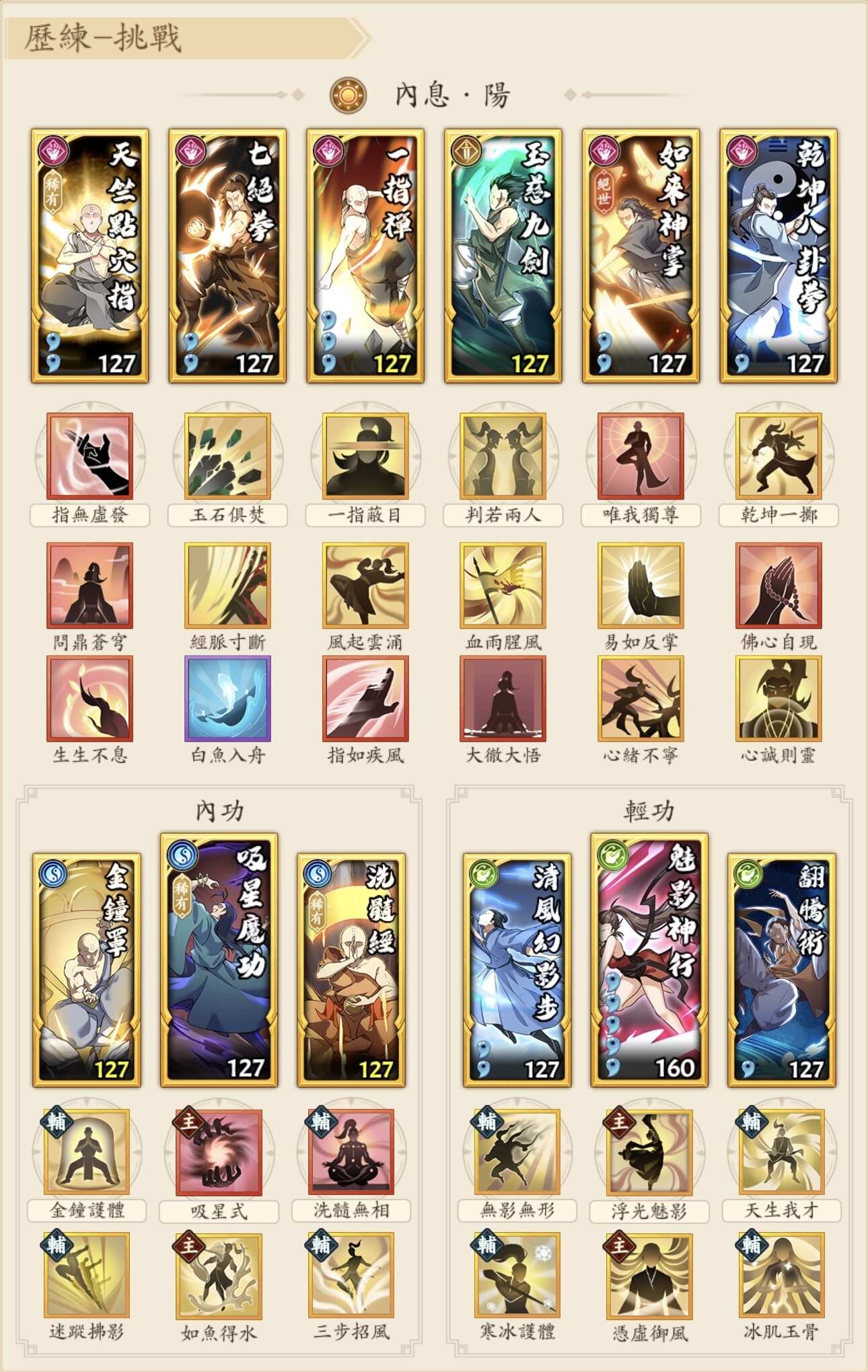 當各系武學+招式完整後,極推薦搞一套吸內拳專門爬塔(不用抽高勾),湊足武學+招式即可。