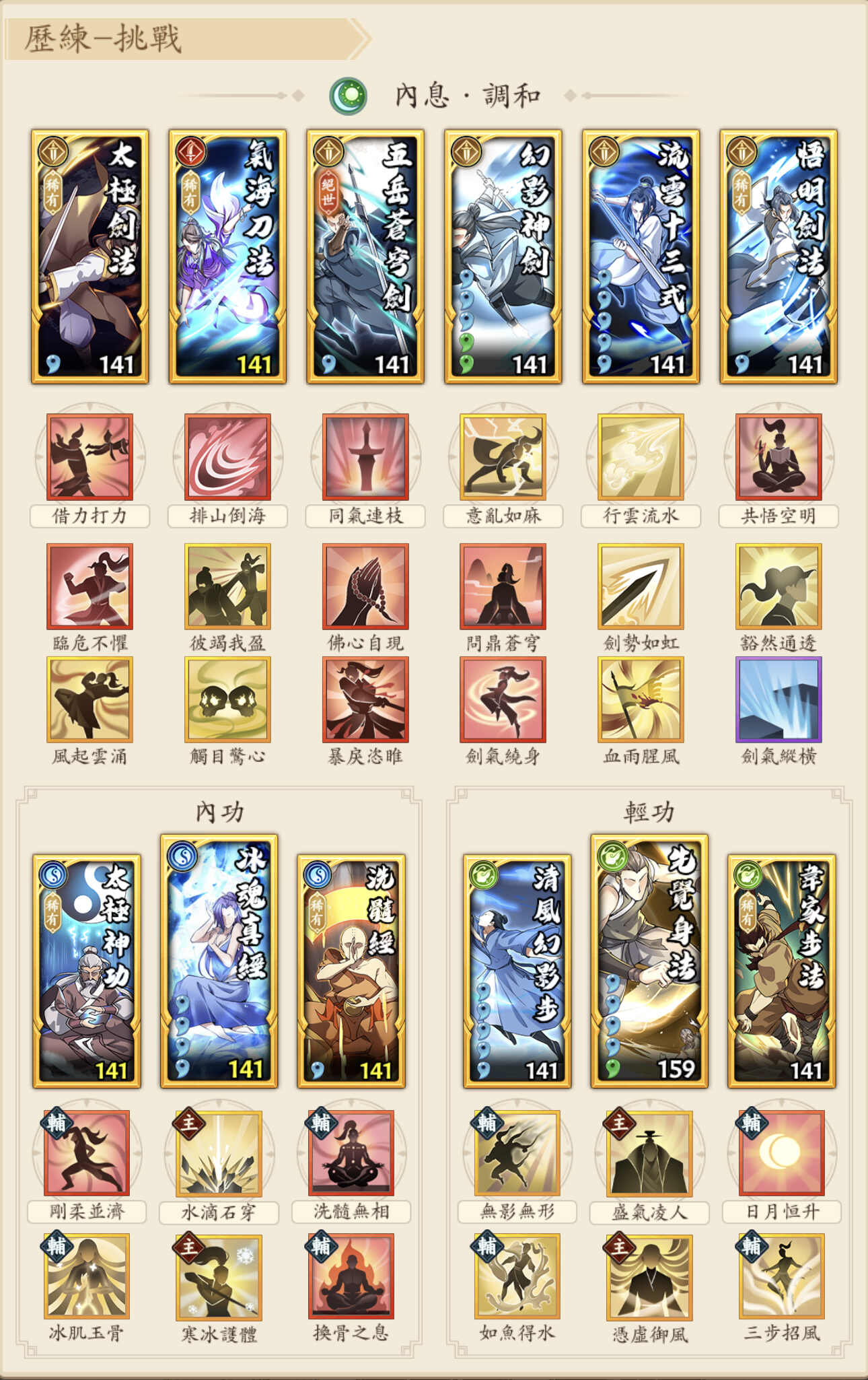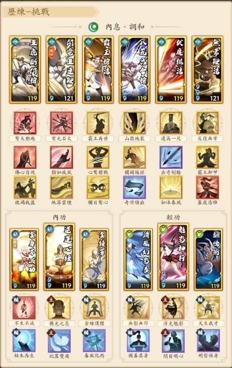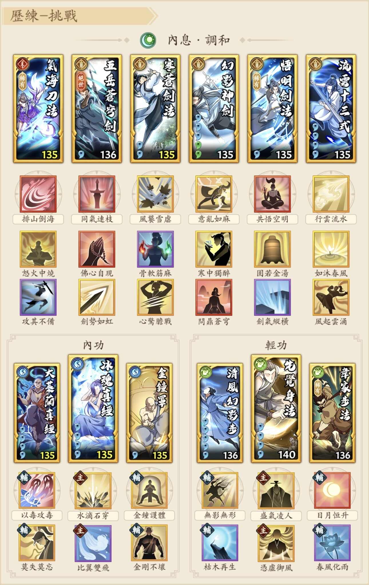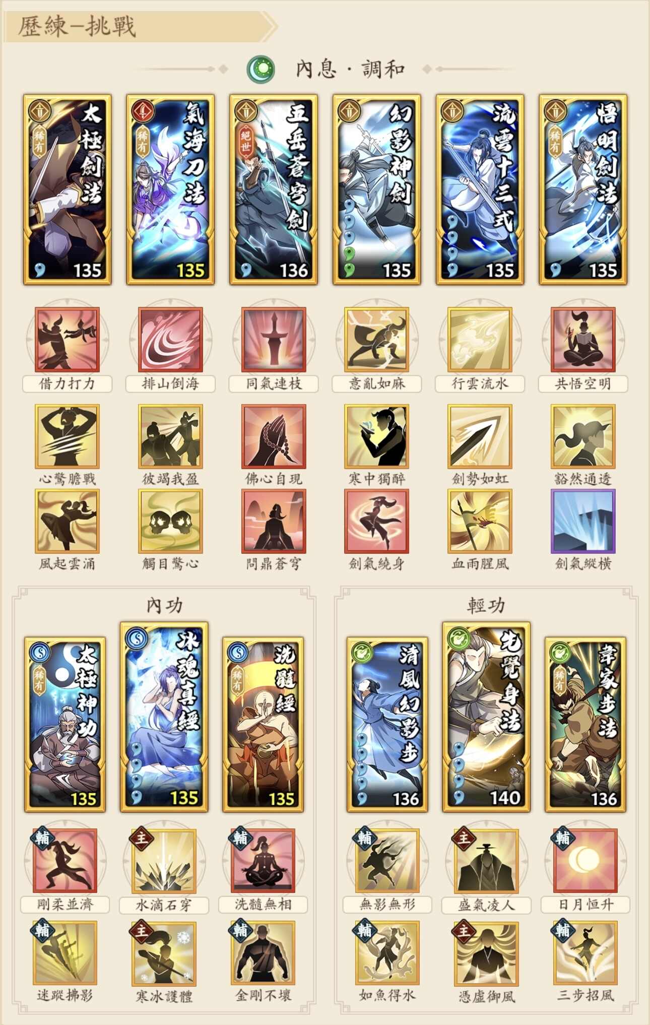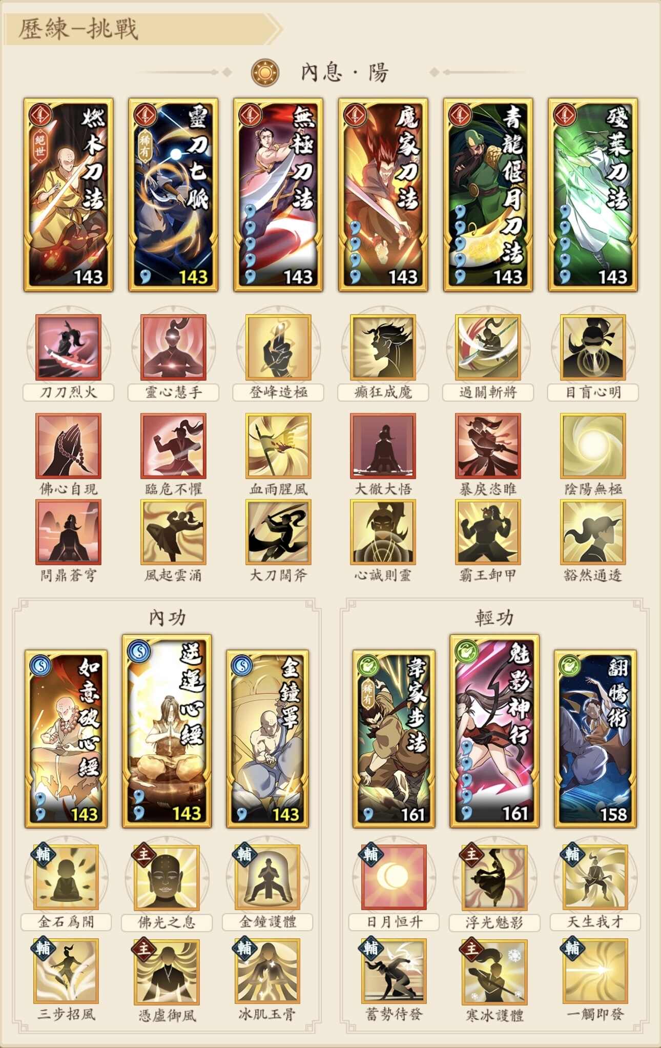 當各系武學+招式完整後,極推薦搞一套吸內拳專門爬塔(不用抽高勾),湊足武學+招式即可。